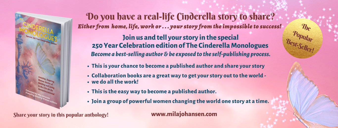 I can't wait to hear your story. I was a true Cinderella in my family and in the workplace, which is what inspired me to write my memoir, Cinderella Interrupted. Even when I first started writing my memoir, I heard similar stories from other women and thought about inviting others to collaborate on a book like this to inspire readers. And now I'm inviting you to participate. ~Mila Johansen